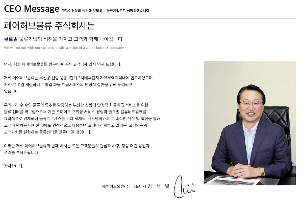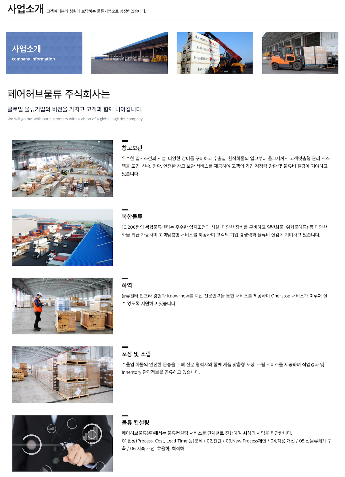 페어허브물류 주식회사는 글로벌 물류기업의 비전을 가지고 고객과 함께 나아갑니다.