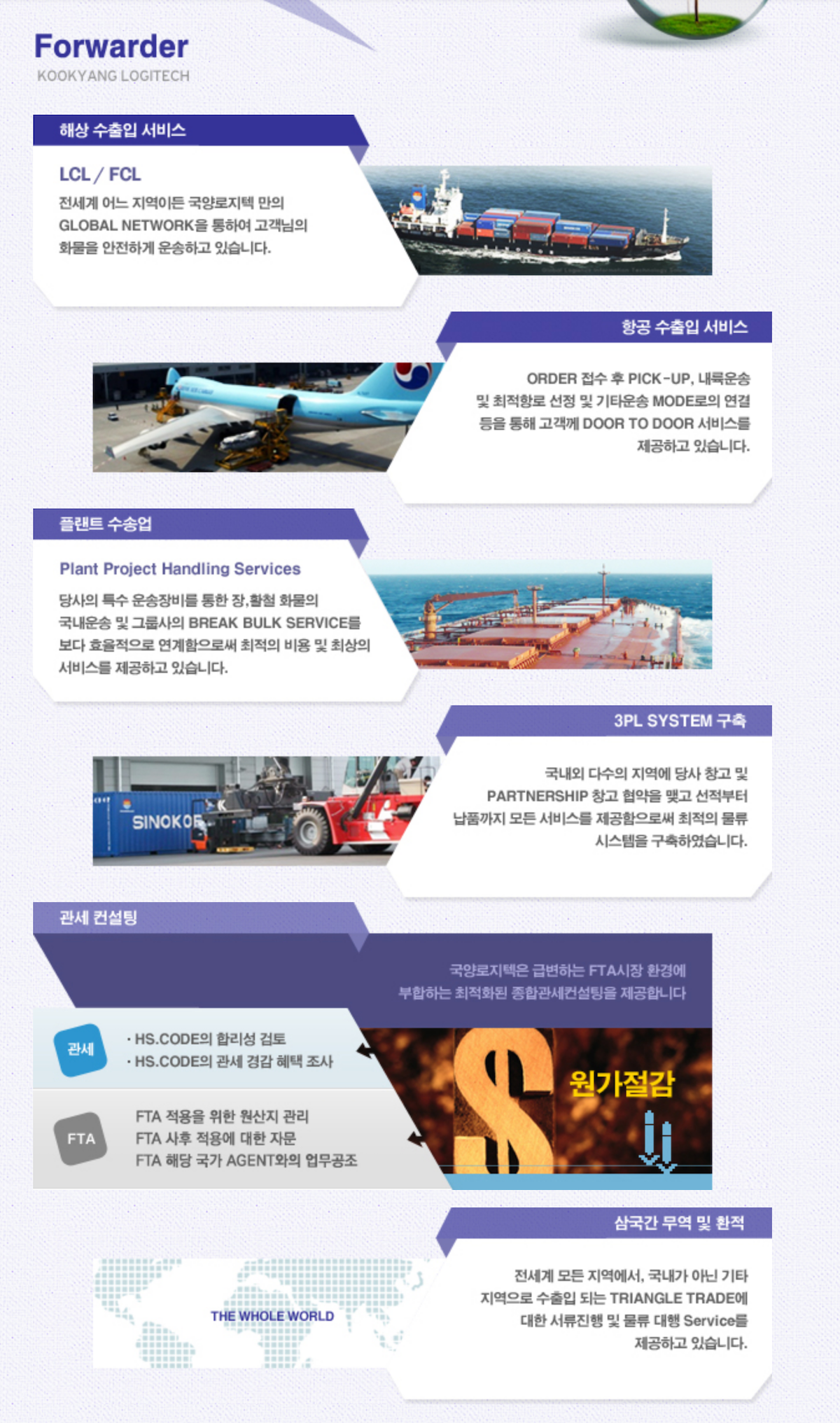 물류건설팀, 국제물류, 국내물류, 부가서비스의 강자 고객과의 신뢰를 최우선으로 합니다. KOOKYANG LOGITECH