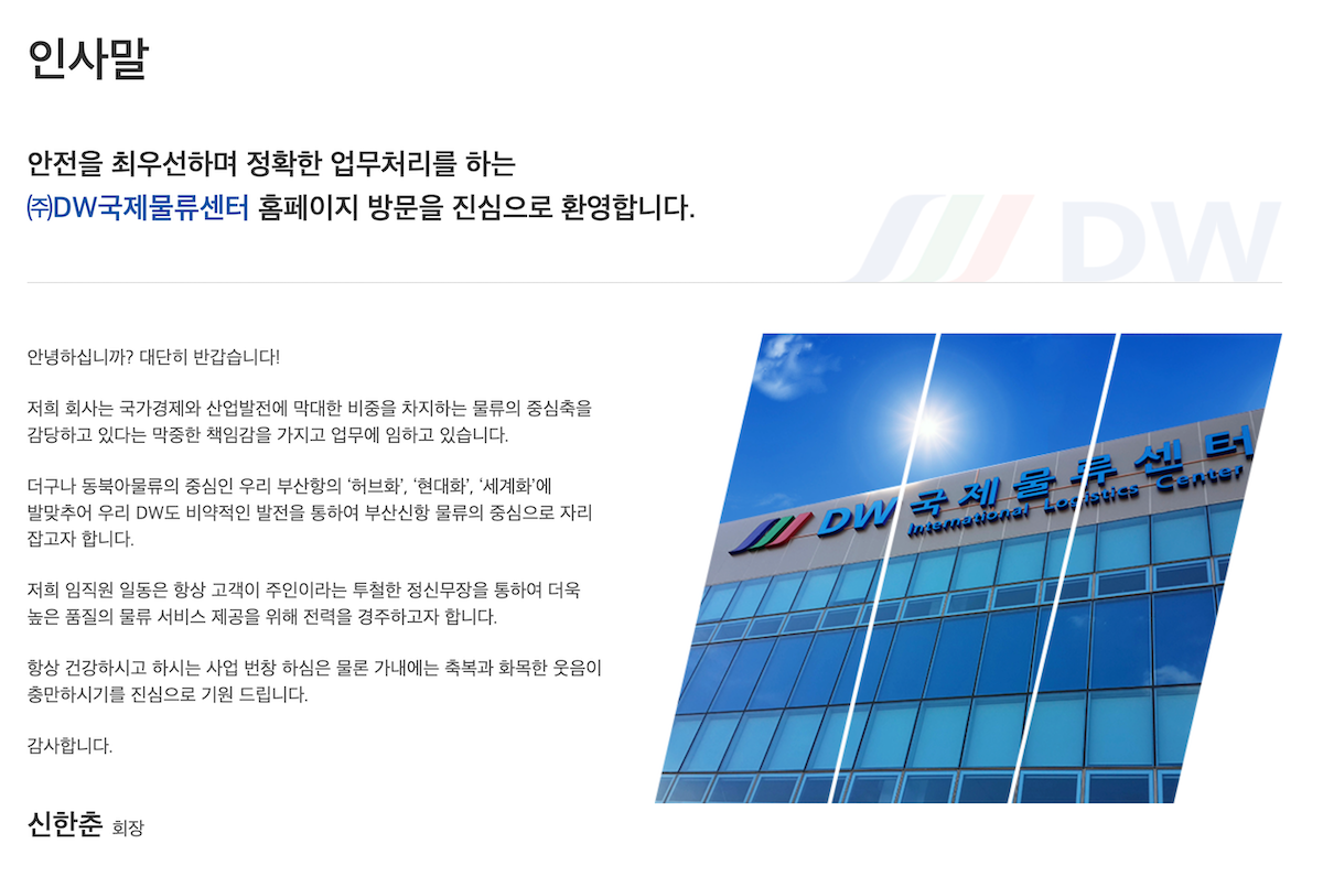 안전을 최우선하며 정확한 업무처리를 하는 (주)DW국제물류센터